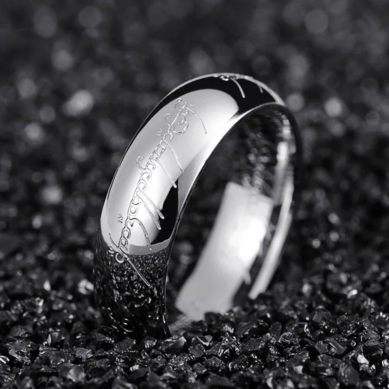 📝 Anneau de pouvoir en acier inoxydable 6 mm, bague unisexe sculptée style fantasy. Alliance moderne, résistante et élégante, idéale mariage ou cadeau symbolique.