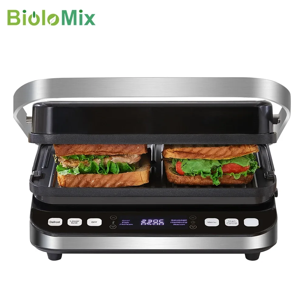 Découvrez le gril électrique BioloMix 2000W avec commandes digitales, ouverture à 180°, préréglages automatiques et plaques amovibles pour paninis, gaufres, grillades. Polyvalent, facile à nettoyer et idéal pour une cuisine saine et rapide.
