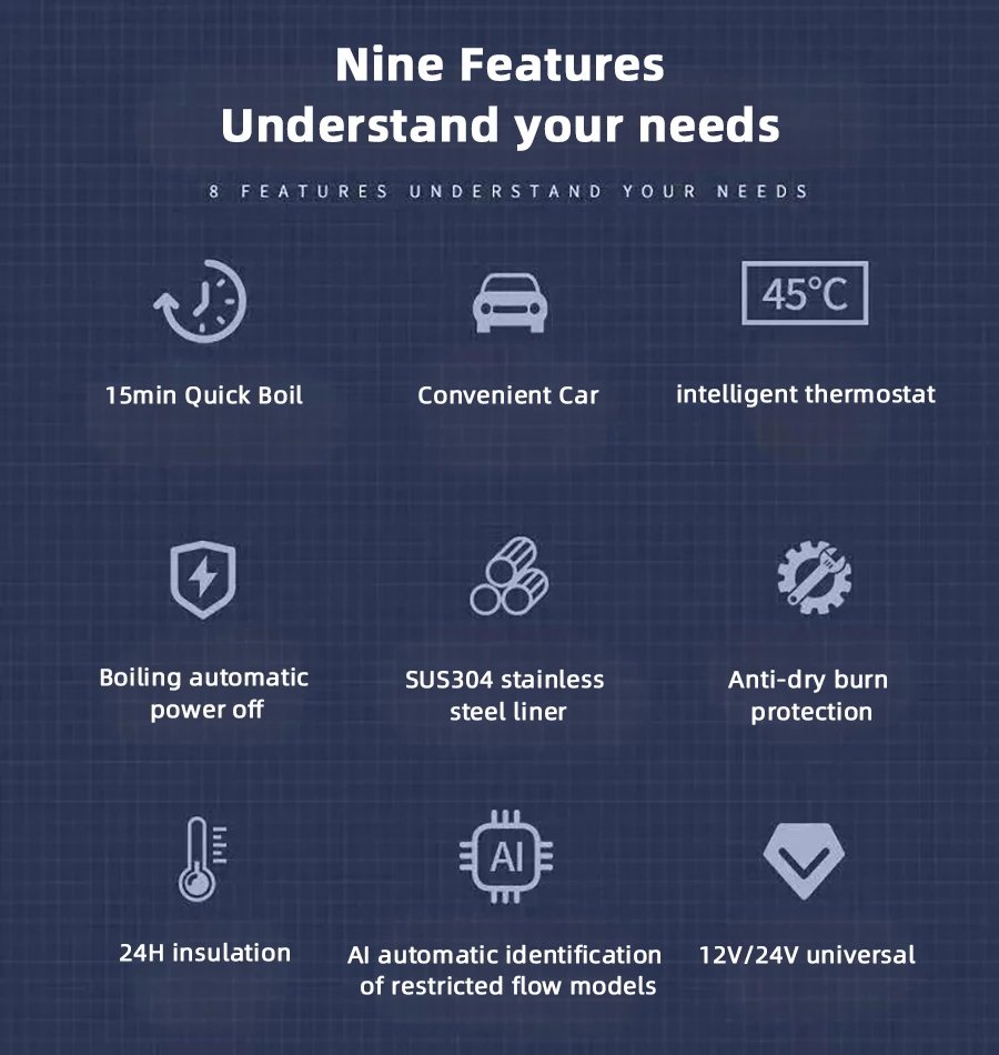★★★★★ – “Parfaite pour la route” “Chauffe très bien, l’écran OLED est super pratique. Je l’utilise tous les jours dans mon camion. L’eau bout en 15 minutes. Très satisfait.”