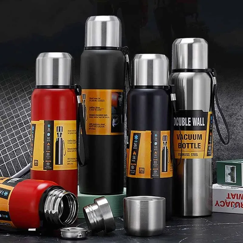 Découvrez la bouteille isotherme en acier inoxydable de grande capacité, conçue pour garder vos boissons chaudes ou froides pendant des heures, même en déplacement. Disponible en 500 ml, 1 L ou 1,5 L, elle s’adapte à toutes les envies d’hydratation, du bureau à la randonnée extrême.
