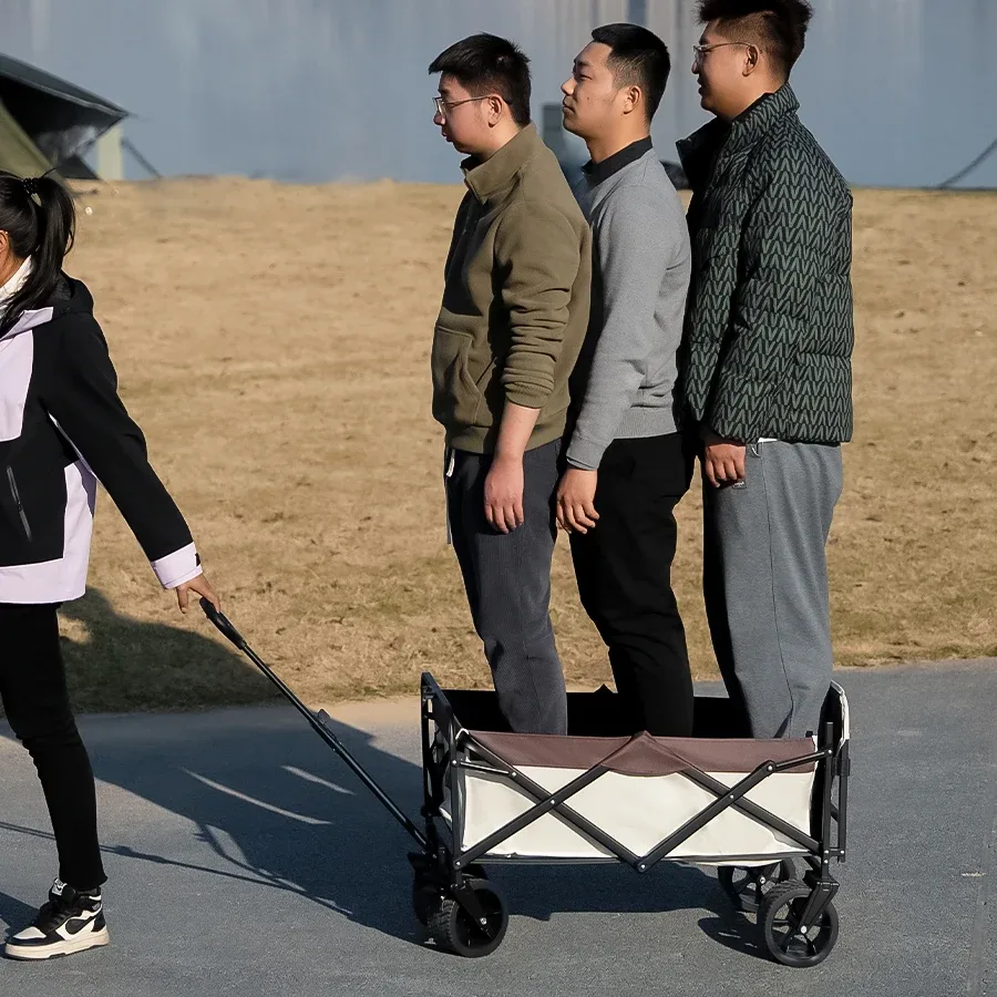 Grande capacité et robustesse Ce chariot pliable est doté d’une structure en acier inoxydable durable et d’un tissu polyester 600D résistant à l’usure. Sa plateforme large peut accueillir de nombreux objets volumineux : glacières, tentes, sacs, outils de jardin, et plus encore. Son design robuste le rend capable de supporter une charge jusqu’à 500 livres (environ 225 kg) sans déformation.