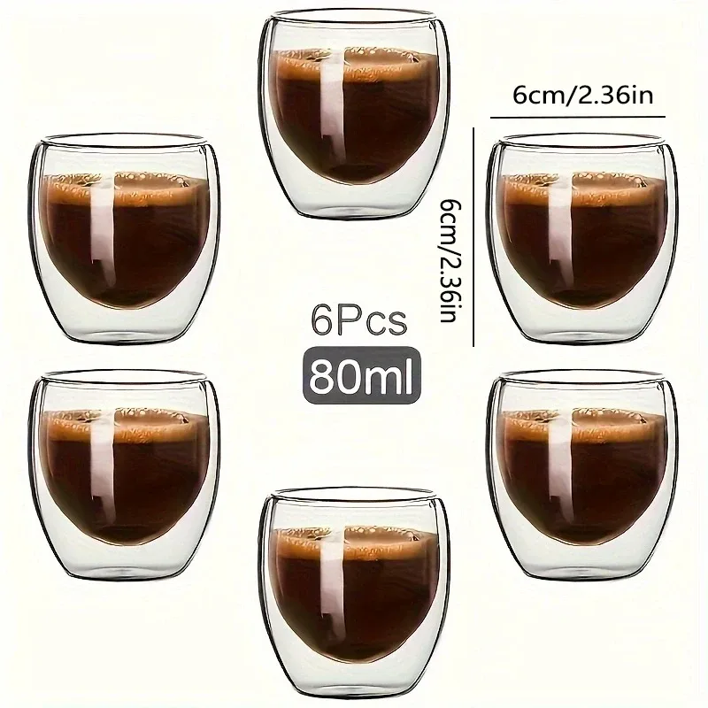 Ensemble de 6 tasses à expresso en verre double paroi 80 ml. Verres isolants, légers et résistants à la chaleur, pour café, thé ou latte. Élégance et confort au quotidien