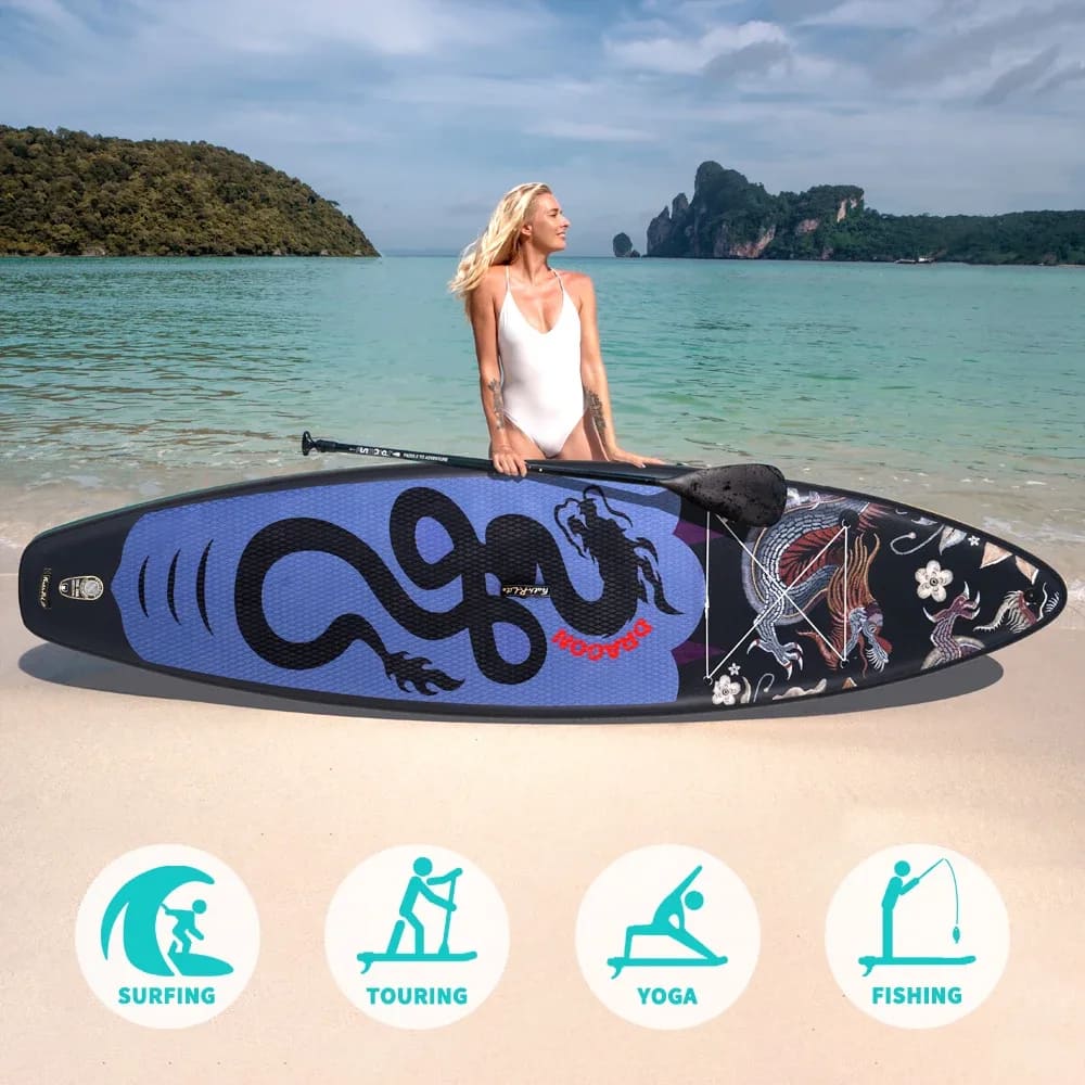La décoration KOI, élégante et artistique, fait de cette planche bien plus qu’un simple équipement de sport : c’est une œuvre flottante. Sa forme allongée et effilée permet une glisse fluide et rapide, parfaite pour les longues distances ou les balades relaxantes.