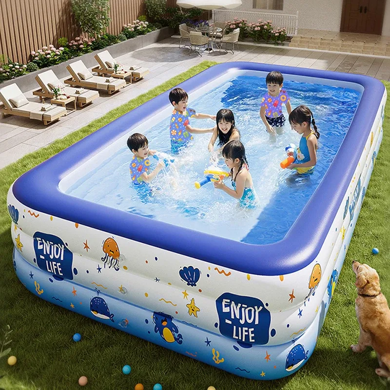 đ𩳠Grande piscine familiale gonflable 1,5 Ă 3m, sĂ©curisĂ©e pour enfants, bĂ©bĂ©s et adultes. Utilisation intĂ©rieure/extĂ©rieure. PVC robuste, design dessin animĂ©.