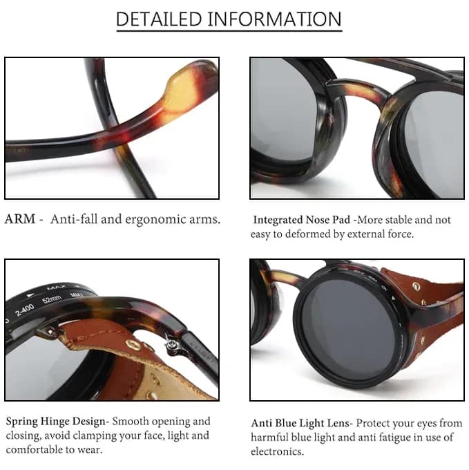 Dotées de verres polarisés UV400 en verre véritable, elles offrent une protection optimale contre les rayons ultraviolets tout en réduisant les reflets gênants. La monture légère en aluminium-magnésium garantit confort, durabilité et stabilité, même en usage prolongé. Leur design circulaire et vintage séduira les amateurs de style unique et affirmé.