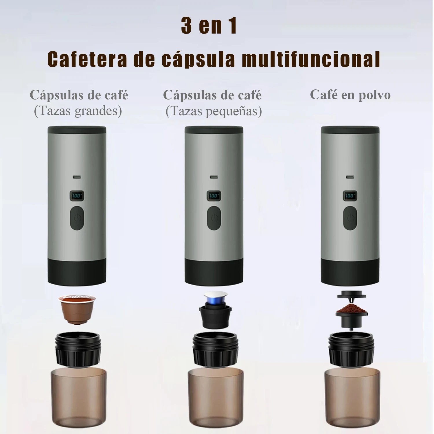 Machine à café électrique portable 3 en 1 MicroData – Expresso sans fil, capsules & extraction directe, affichage numérique, 72W Port. Garanti