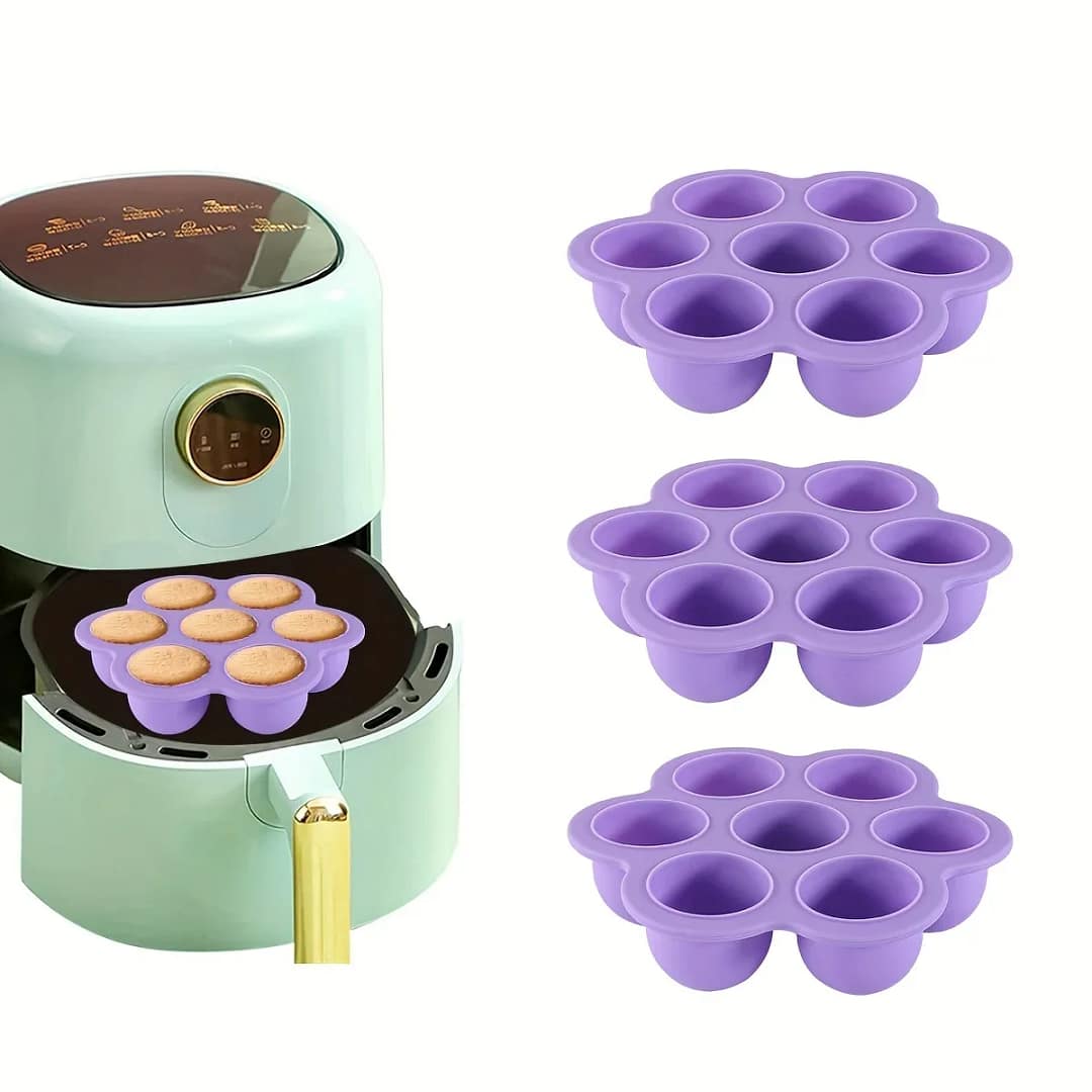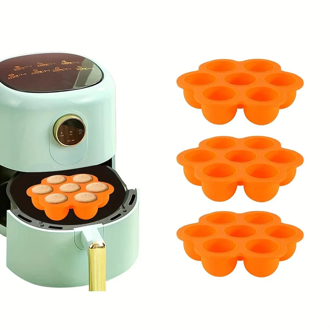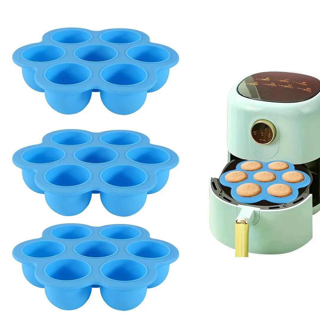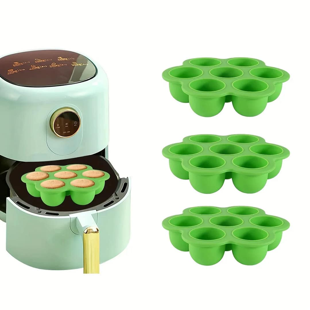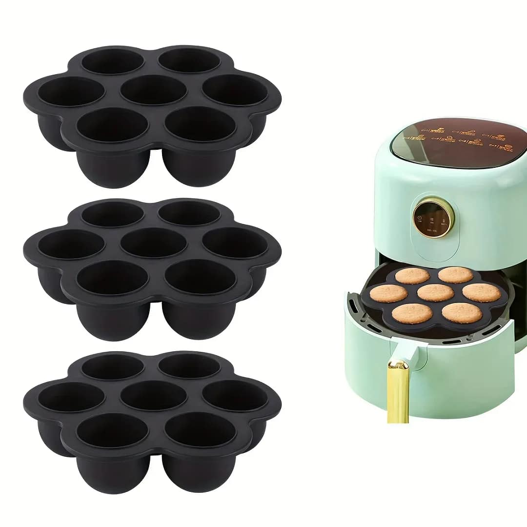 Préparez muffins, puddings et gâteaux maison facilement avec ce moule à muffins en silicone antiadhésif 7 cavités. Compatible friteuse à air, four, réutilisable et facile à nettoyer.
