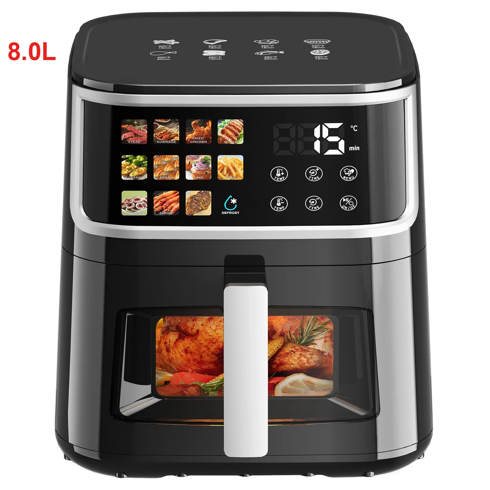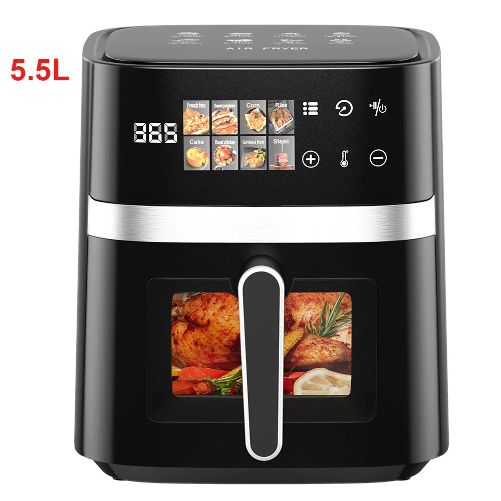 🔥 Patbrela Friteuse à Air 5,5 L ou 8 L – Air Fryer 8-en-1 Sans Huile, Écran LED Tactile, Fenêtre Visible, 200°C, 1350W