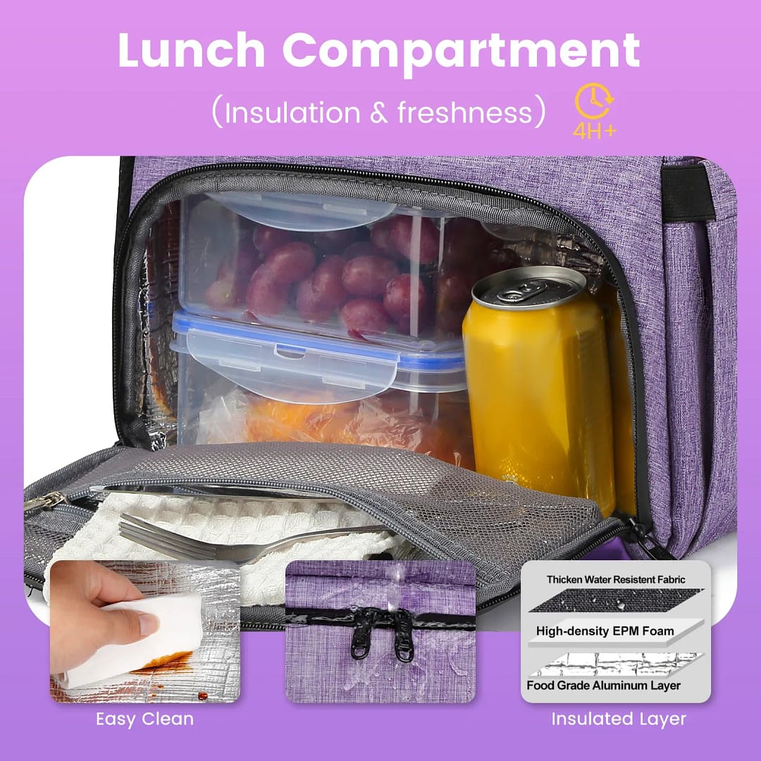 Sac à dos isotherme multifonction avec compartiment repas et ordinateur portable 15,6″, port USB, protection RFID et design anti-vol. Idéal pour le travail, les voyages et les pique-niques.