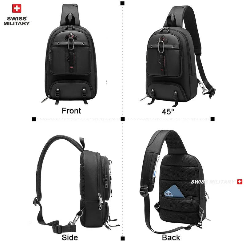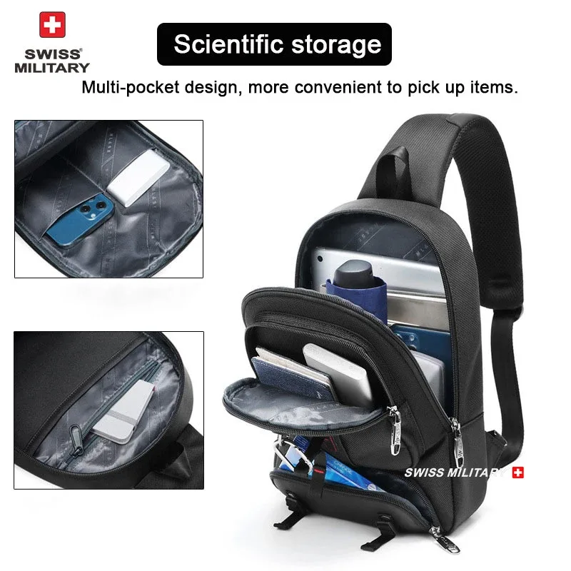 Sac de poitrine SWISS MILITARY anti-vol pour homme. Étanche, léger et pratique, idéal pour les voyages courts, sorties urbaines et déplacements quotidiens.