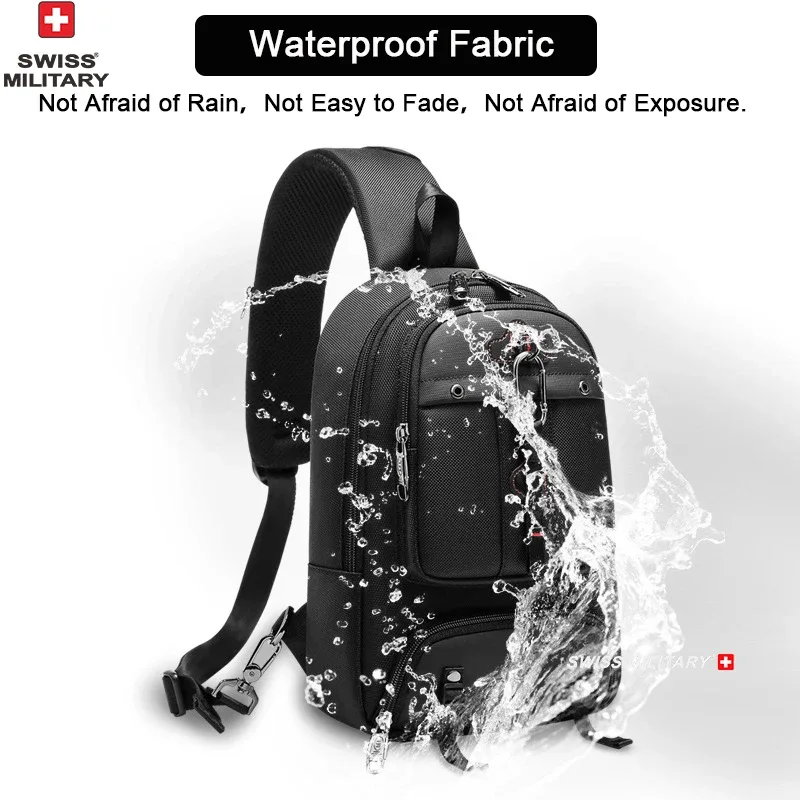 🎒 SWISS MILITARY – Sac de Poitrine Anti-Vol Étanche pour Homme, Sac à Bandoulière de Voyage Décontracté
