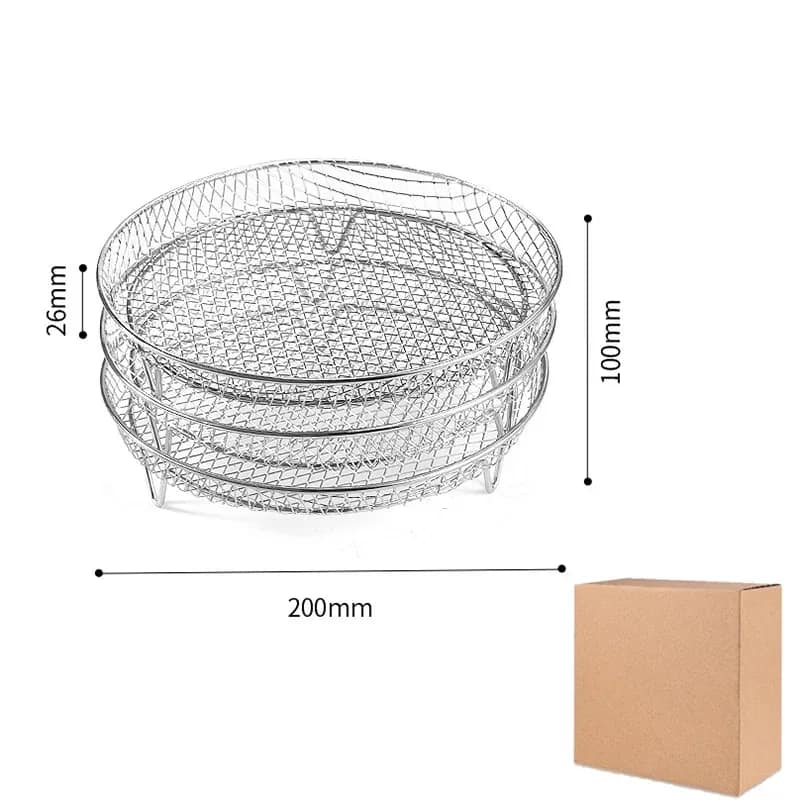 Supports 304 pour friteuse à air. Optimisez votre cuisson avec ce ensemble de 3 paniers empilables en acier inoxydable. Multi-usage : cuisson uniforme, déshydratation, grill, vapeur et four.