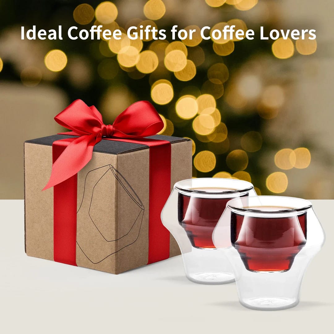 Tasses expresso double paroi MHW-3BOMBER : verre borosilicate résistant, anti-brûlure, design suspendu. Idéal café, thé