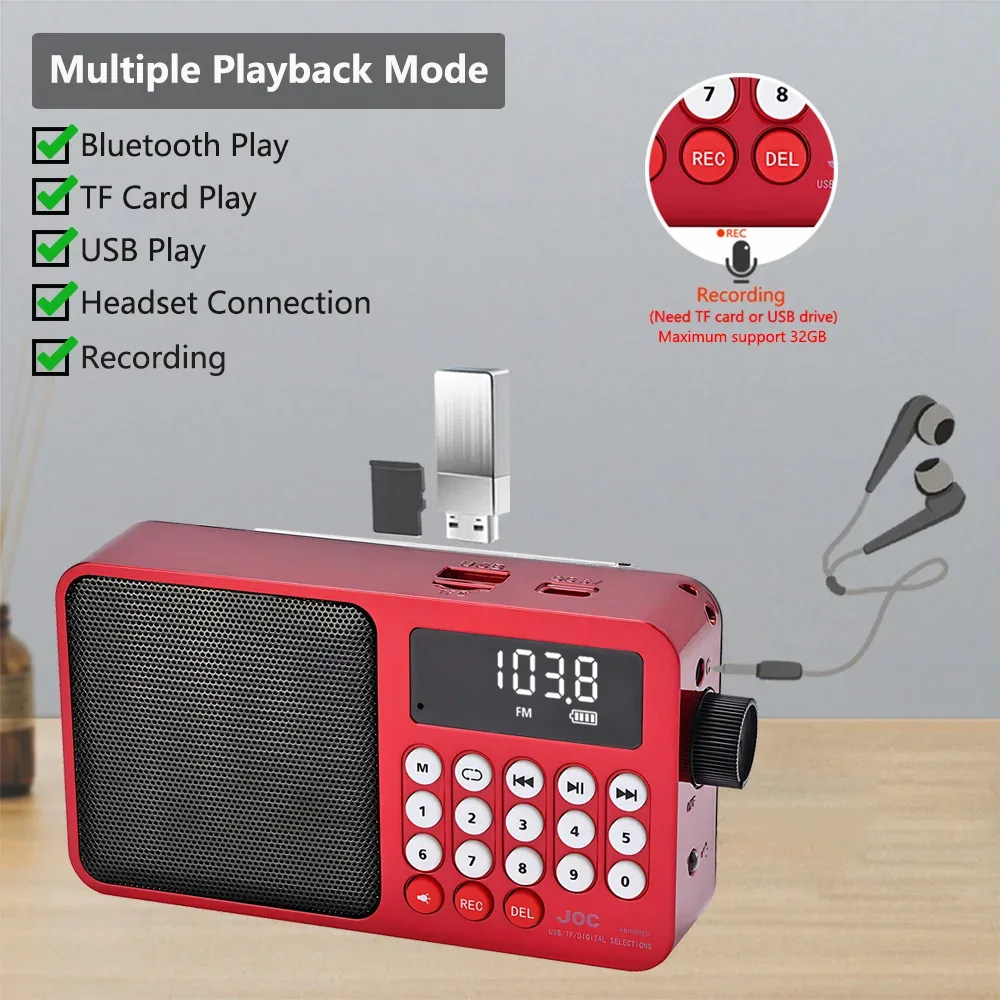 La radio prend en charge Bluetooth 5.3, la lecture de cartes TF (jusqu’à 32 Go) et de clés USB, ce qui vous permet d’écouter vos playlists préférées où que vous soyez. Que vous souhaitiez écouter la radio FM classique, diffuser depuis votre smartphone ou profiter de vos fichiers MP3 enregistrés, elle sait tout faire.