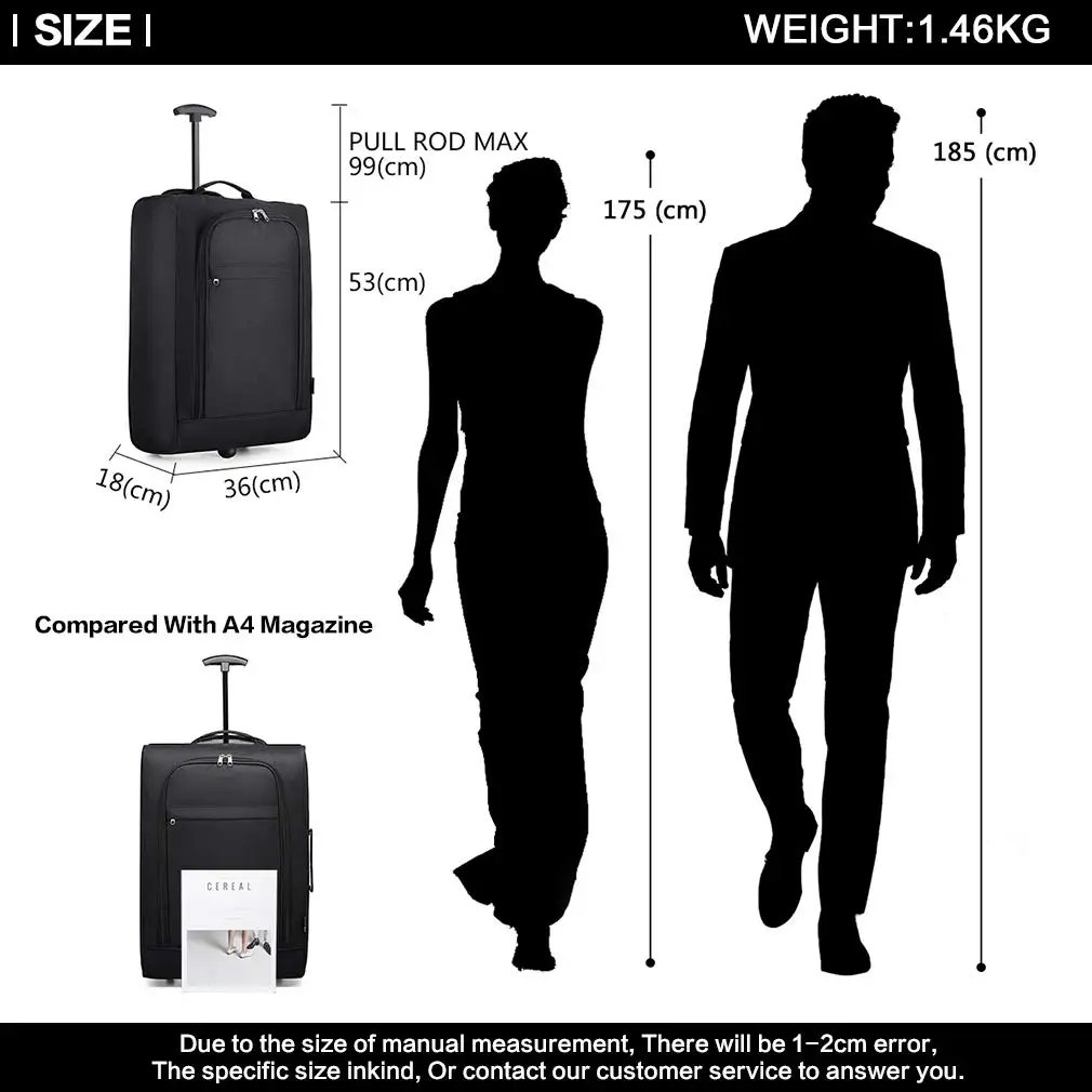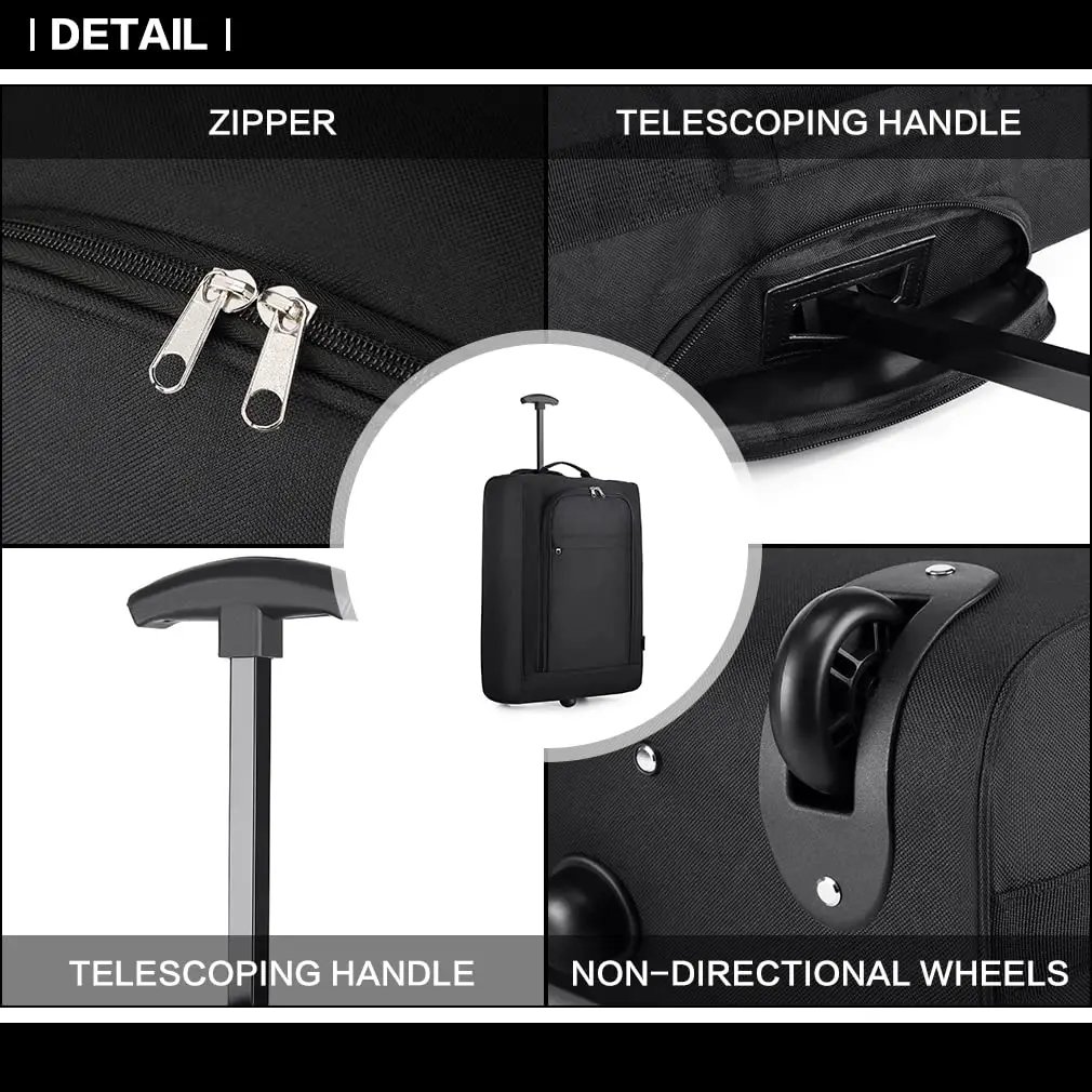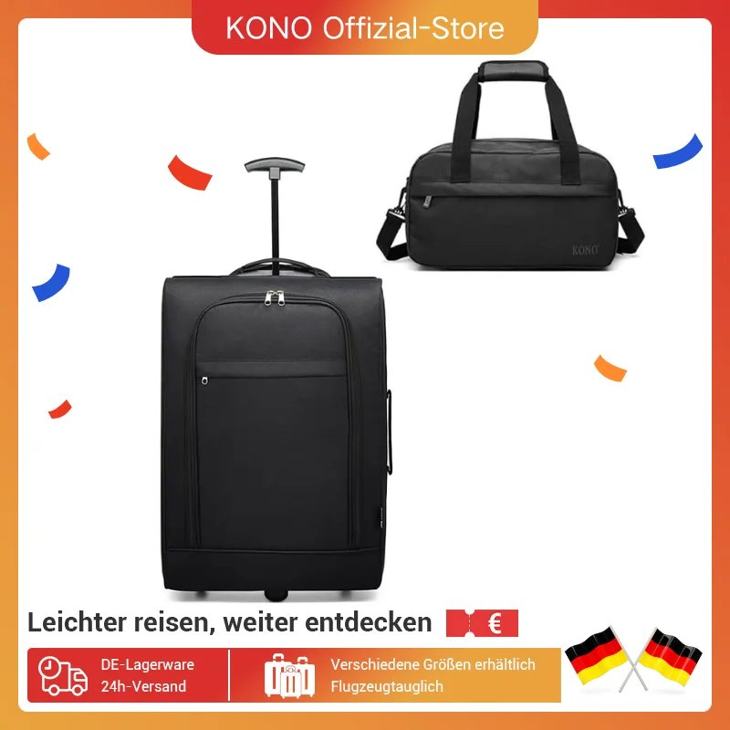📝 Valise KONO cabine légère + sac bandoulière. Trolley souple, 2 compartiments, roues, poignée télescopique. Compatible Lufthansa, Eurowings, Ryanair. Voyage pratique.