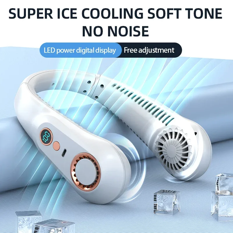 đVentilateur de cou OUSSIRRO 3000mAh â sans lame, rechargeable USB, lĂ©ger et silencieux avec affichage numĂ©rique. IdĂ©al Ă©tĂ©, sport, bureau, voyages & extĂ©rieur.